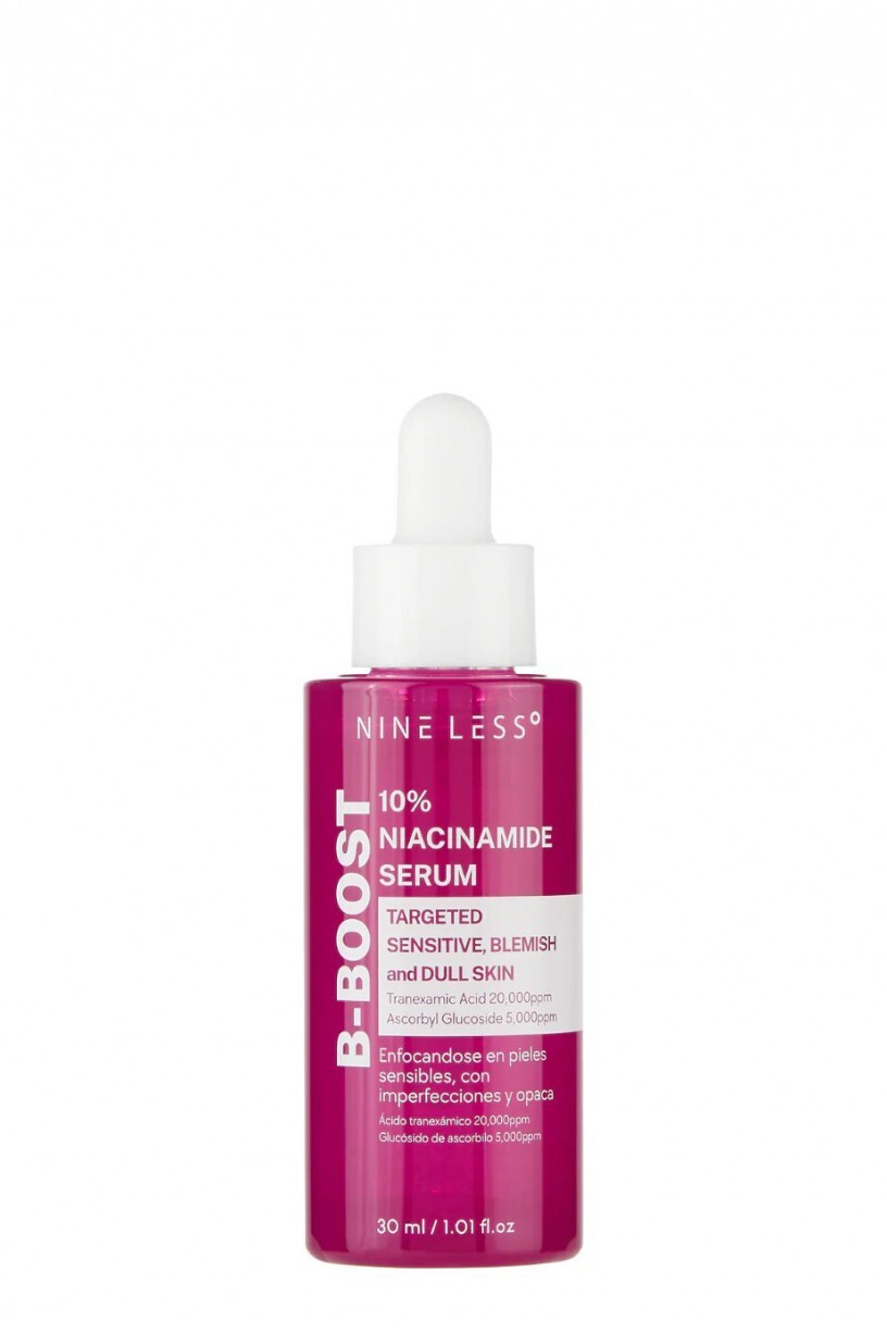 NINE LESS B-Boost 10% Niacinamide Serum — это высококонцентрированная сыворотка, разработанная для осветления кожи, выравнивания тона и уменьшения жирного блеска. Сыворотка эффективно борется с пигментацией, следами постакне, а также улучшает состояние кожи, сужая расширенные поры. Она быстро впитывается, не утяжеляет кожу и не оставляет липкой пленки, придавая лицу здоровое сияние.