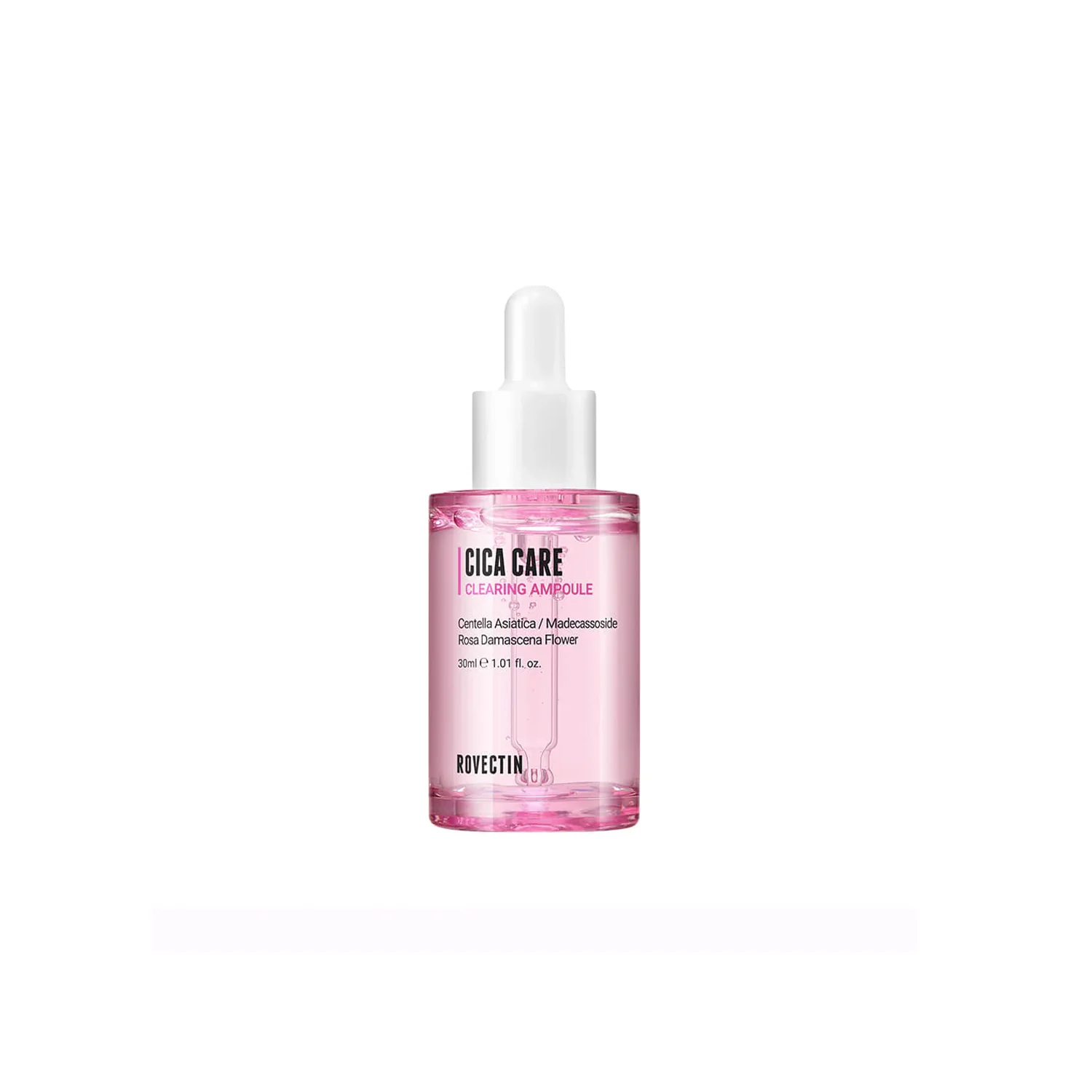 ROVECTIN Cica Care Clearing Ampoule — это успокаивающая сыворотка, разработанная для восстановления повреждённой кожи и борьбы с воспалениями. Сыворотка на основе 73% экстракта центеллы азиатской, ниацинамида и каламина глубоко увлажняет, выравнивает тон кожи и придаёт естественное сияние. Центелла обладает мощными противовоспалительными свойствами, способствуя регенерации и заживлению мелких повреждений. Ниацинамид улучшает защитные функции кожи, а каламин снимает покраснения и раздражения.