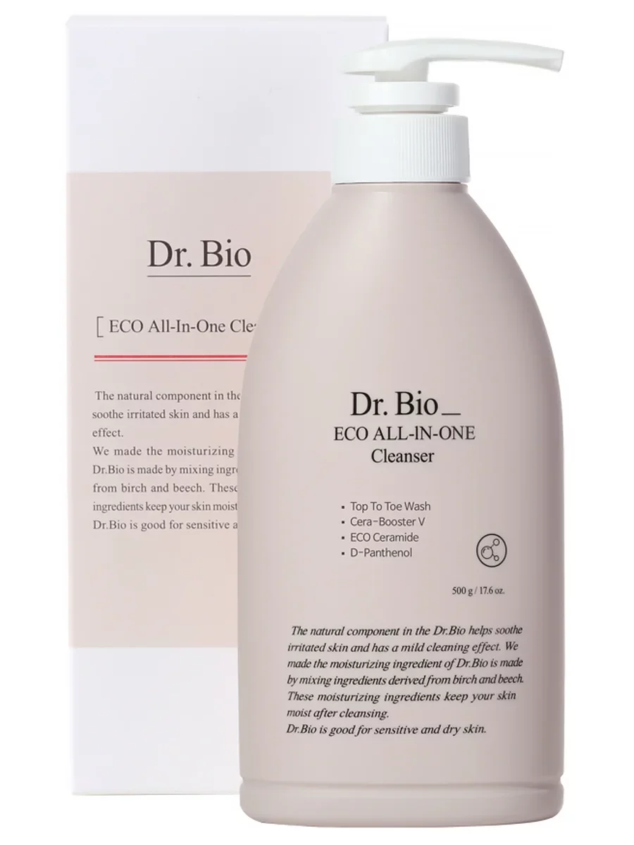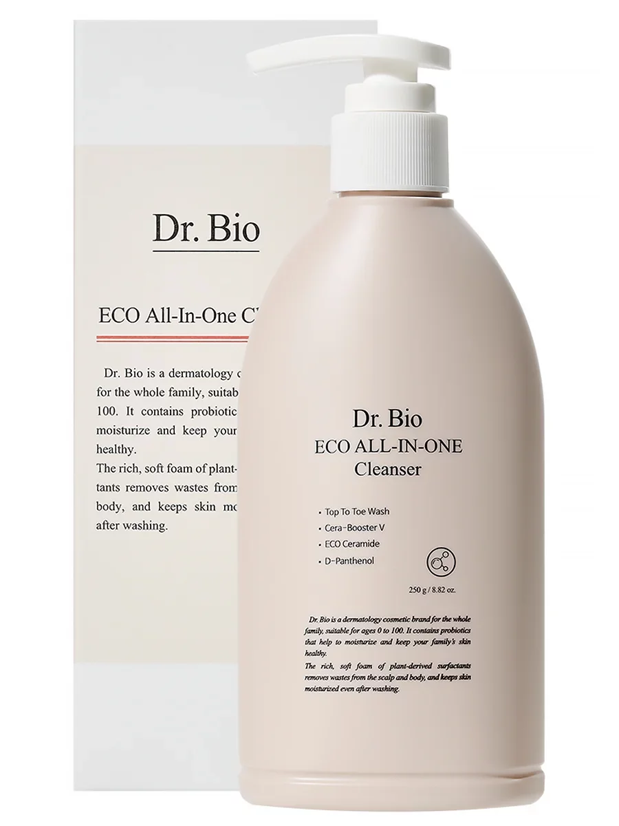 Универсальный очищающий гель DR.BIO ECO ALL-IN-ONE CLEANSER подходит для всех типов кожи, включая самую чувствительную и кожу младенцев. Этот гель мягко и эффективно очищает кожу, восстанавливает микробиом и укрепляет эпидермальный барьер, успокаивая раздражения и снимая покраснения. Продукт насыщает кожу влагой и предотвращает её потерю, обеспечивая длительное увлажнение и уход. Гель не только удаляет излишки себума, загрязнения и мертвые клетки, но и предупреждает появление высыпаний, придавая коже шелковистость и мягкость.