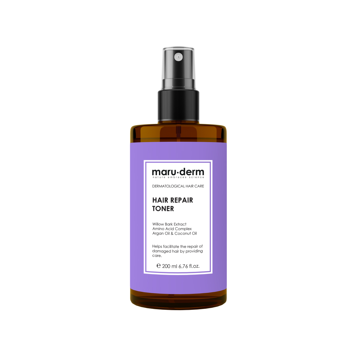 Тоник MARUDERM HAIR REPAIR TONER предназначен для ухода за истонченными, сухими и поврежденными волосами, восстанавливая и смягчая их. Его формула специально разработана для увлажнения и питания волос, при этом улучшая их упругость и блеск. Тоник обладает легкой текстурой, которая не утяжеляет волосы и легко распределяется по коже головы и волосам.