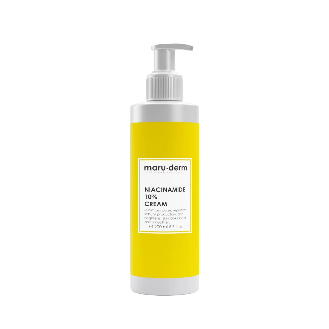 Увлажняющий крем с 10% ниацинамида MARUDERM NIACINAMIDE 10% CREAM, балансирует кожу, склонную к жирности, и способствует сужению пор. Активная комбинация гиалуроновой кислоты, пантенола и сквалана поддерживает увлажненность кожи и улучшает её регенерацию. Крем буквально преображает кожу, выравнивая тон и создавая естественное сияние.